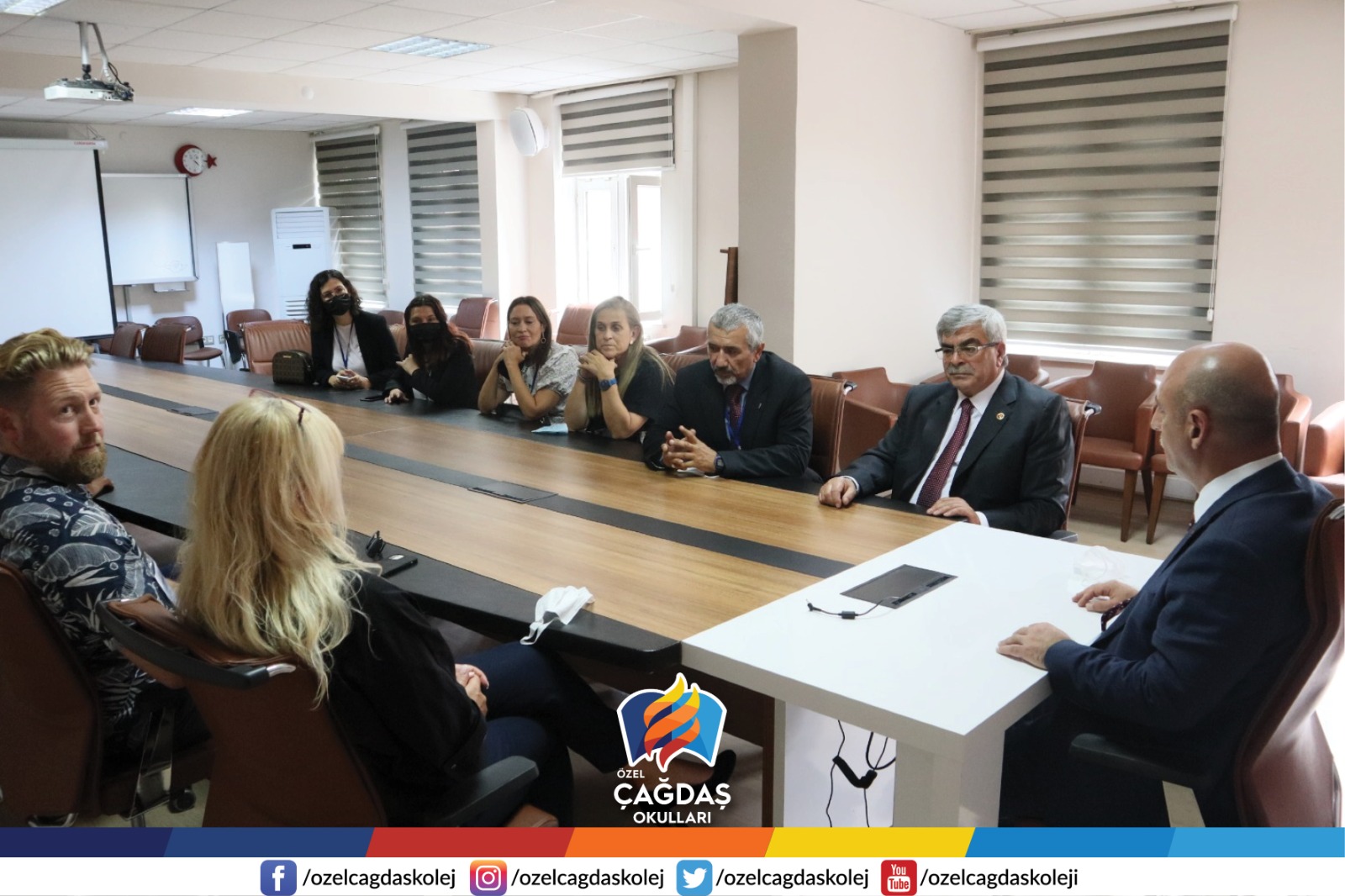 Yabancı Diller Bölüm Başkanı Bülent ÖZCAN, Türkiye’deki eğitim sistemi ve okulumuzun tanıtımını gerçekleştirdi. Sonrasında hep birlikte Büyükşehir Belediye Başkanımız Sayın Prof. Dr. Yılmaz Büyükerşen'i ve ardından İl Milli Eğitim Müdürümüz Hakan Cırıt’ı ziyaret ettiler. Kısa bir şehir turundan sonra, misafirlerimiz için düzenlenen hoş geldin yemeği ile gün tamamlandı.