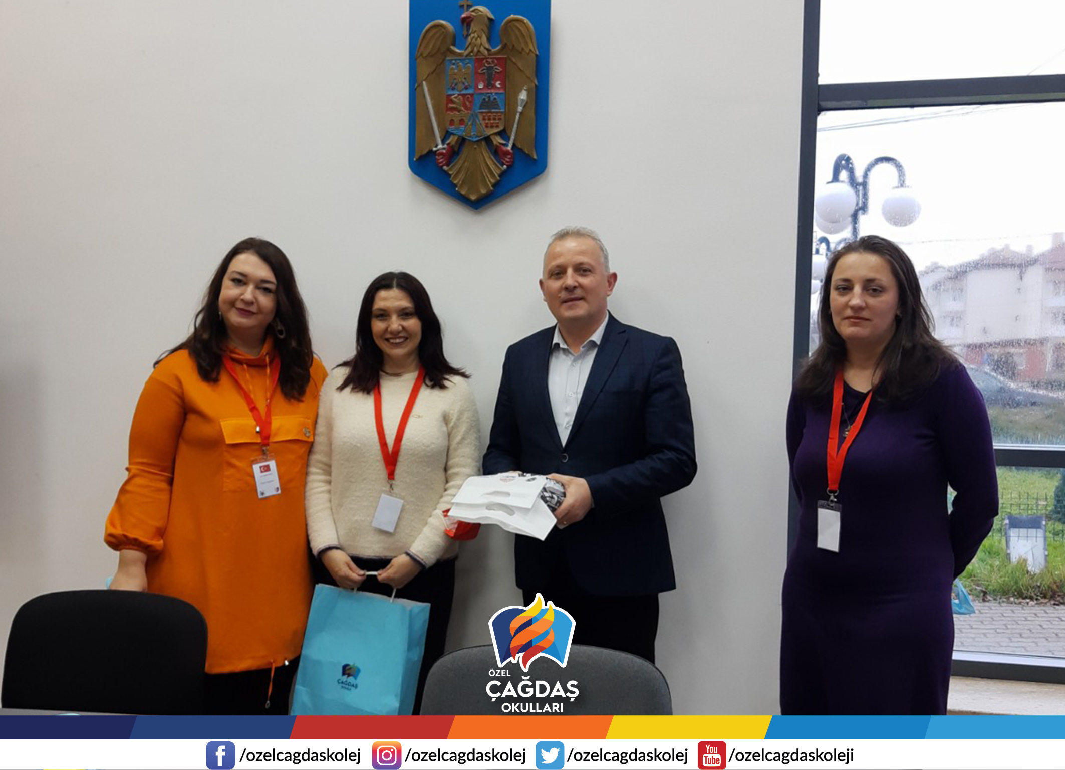 Proje kapsamında öğrencilerimizle birlikte Romanya’da bulunan lise öğretmenlerimiz Öznur Galyoncu ve Nihal Mcquid, Arad Belediye Başkanı Tomuta Daniel’e Eskişehir’in meşhur met helvası ile Türk lokumu hediye etti.