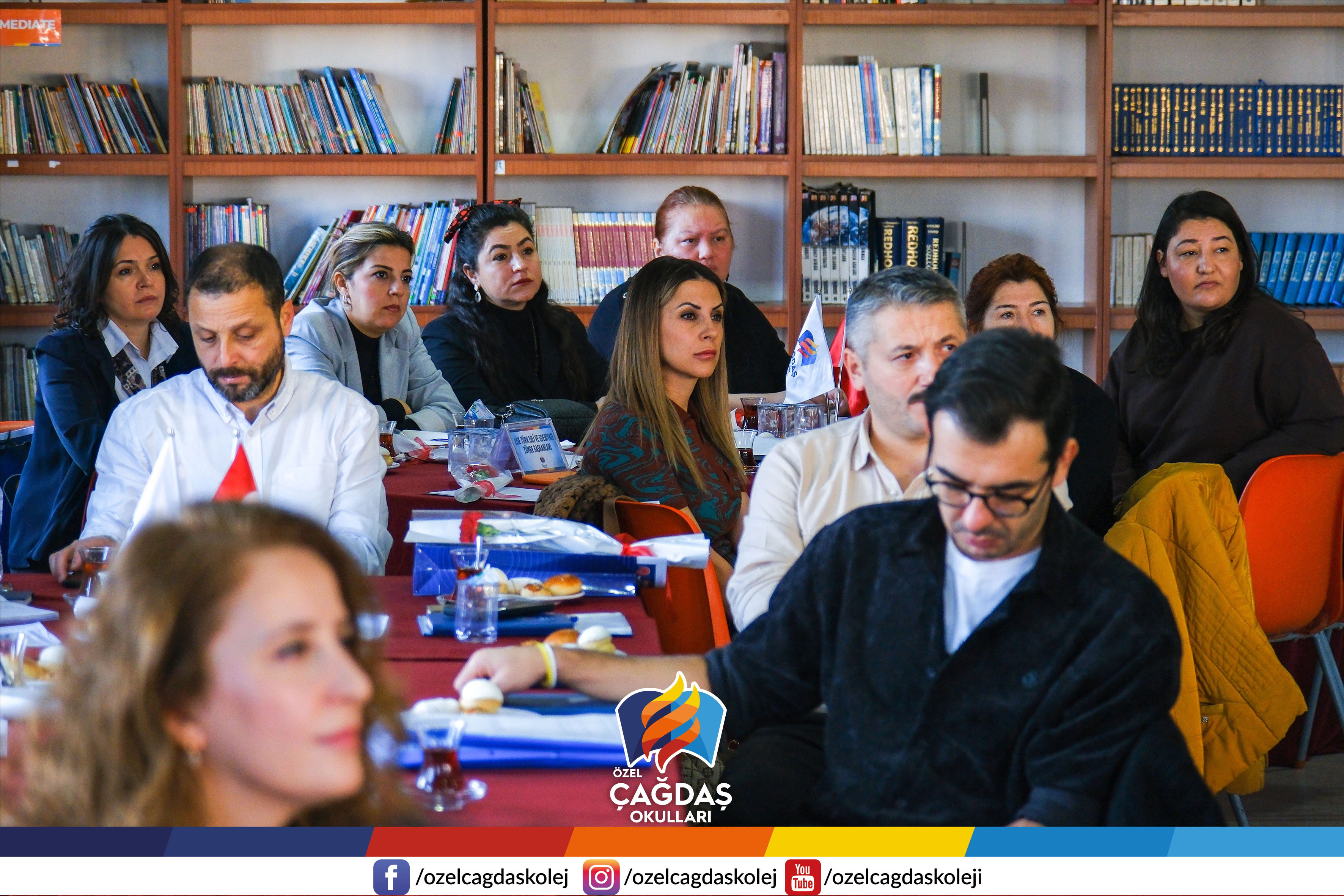 Milli Eğitim Bakanlığı Baş Müfettişi Sayın Orhan Tunç başkanlığında, Milli Eğitim Bakanlığı Müfettişi Sayın Cengiz Kaleağası ve Milli Eğitim Bakanlığı Müfettişi Sayın Gözde Yılmaz'ın katılımları ile okulumuzda Türkiye Yüzyılı Maarif Modeli Değerlendirme Toplantısı yapıldı. Eskişehir Milli Eğitim Müdürlüğüne bağlı 16 okulumuzun zümre başkanlarının katılımı ile gerçekleşen toplantıda, Milli Eğitim Bakanlığı Baş Müfettişi Sayın Orhan Tunç öğretmenlerimizle paylaşımlarda bulunarak öğretmenlerimizin de Maarif Modeli ile ilgili görüşlerini aldı. Kendilerine değerli katkılarından dolayı teşekkürlerimizi sunuyoruz.