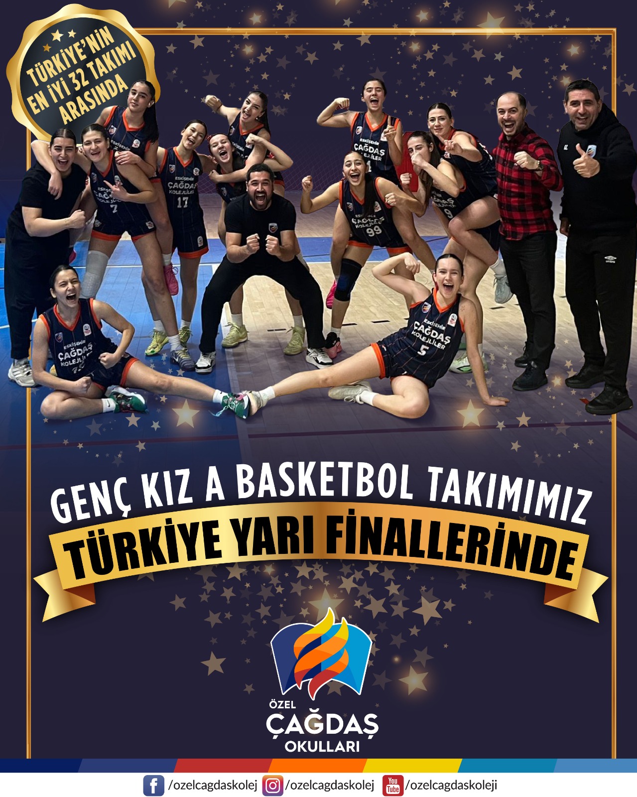 Çağdaş Genç A Kız Basketbol Takımı, her yıl olduğu gibi bu yıl da Türkiye Yarı Finalleri 3-6 Şubat tarihlerinde gerçekleşecek Eskişehir’i temsil edecek.